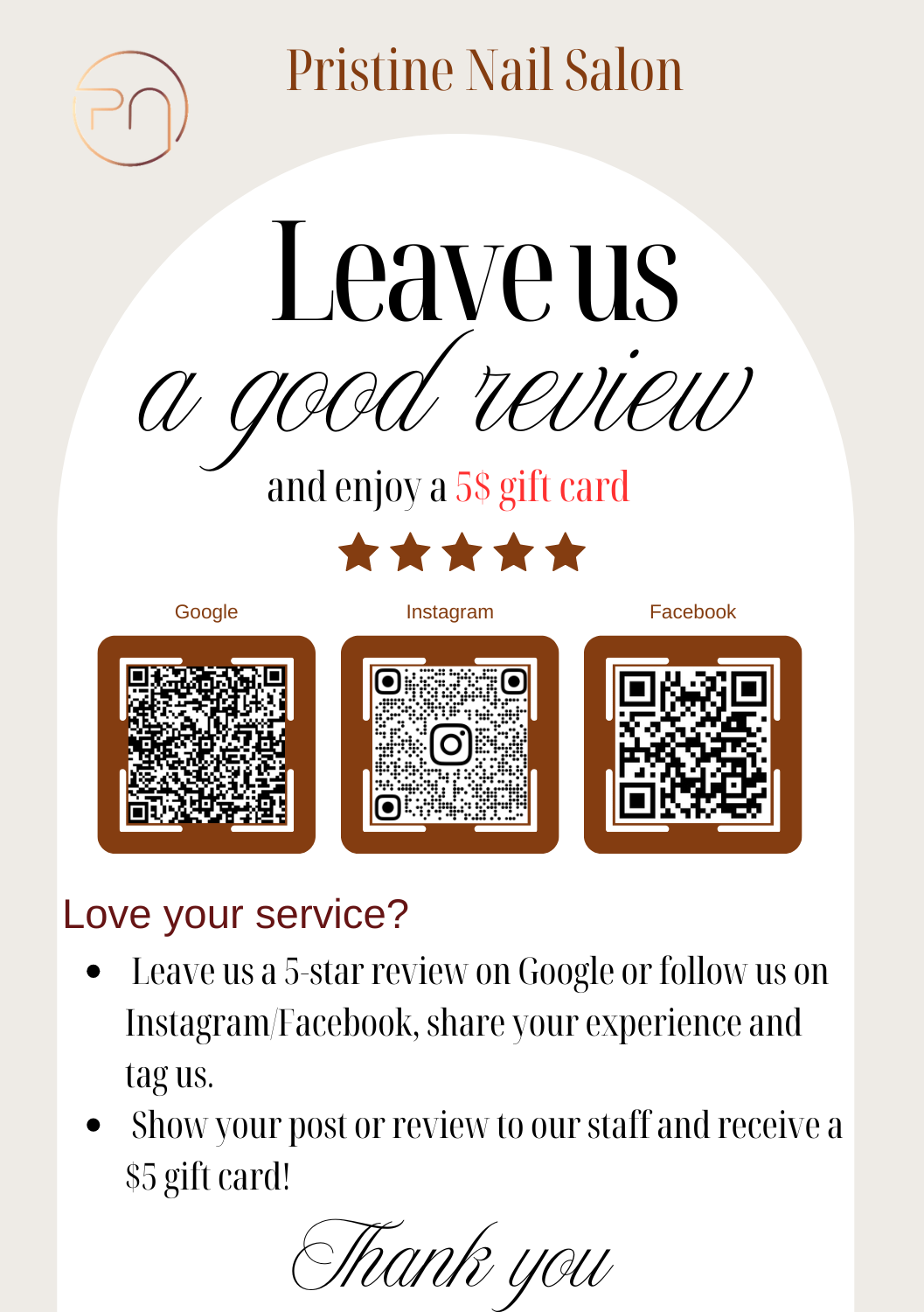 At Pristine Nail Salon, beauty begins with care. We aren’t just a place to get your nails done; it’s a space where you can relax, feel cared for, and leave feeling more like yourself. Our goal is to provide you with a relaxing, uplifting experience where your comfort, satisfaction, and to treat you like family. We provide expert service, a clean and serene environment, and genuine kindness in every touch, we’re here to make you feel pampered, valued, and truly beautiful - inside and out.
